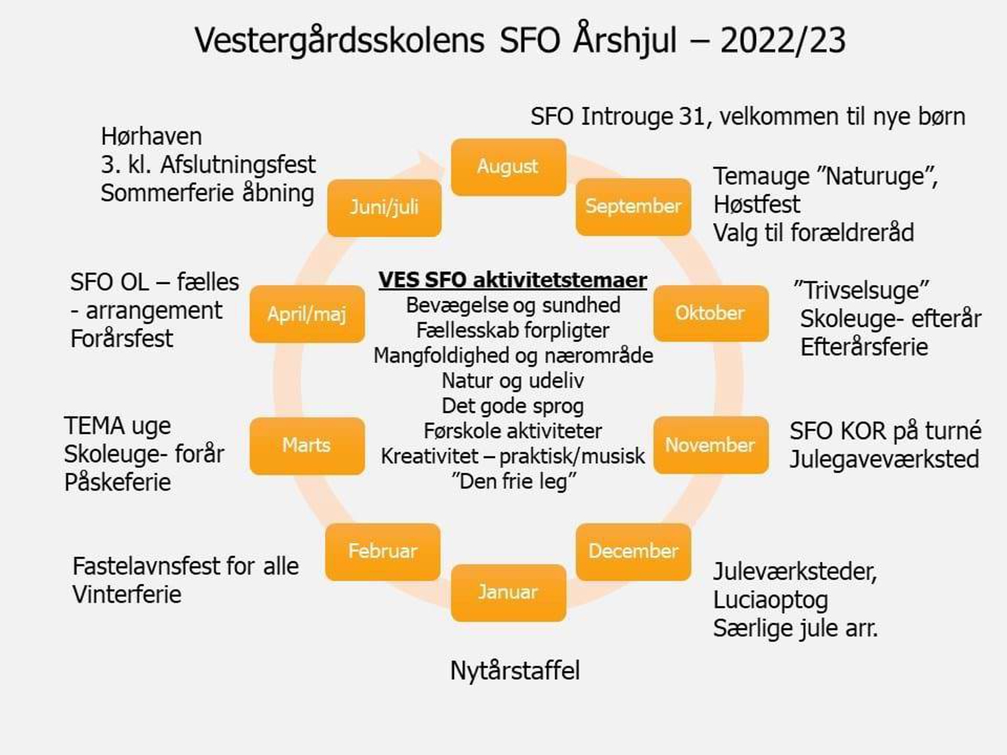 Det pædagogiske arbejde i Vestergårdsskolens SFO tager udgangspunkt i skolens værdier samt vores fritidspædagogiske vision. Se SFO mål og indholdsbeskrivelse under ”Mål og Indhold”.